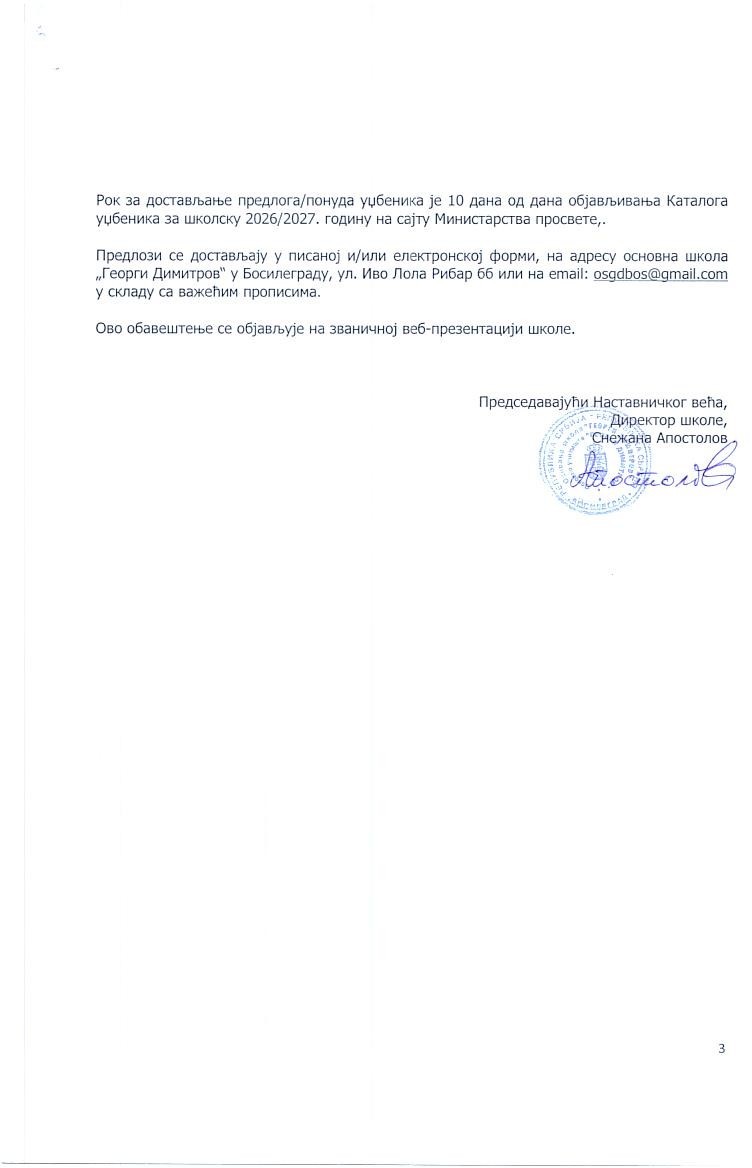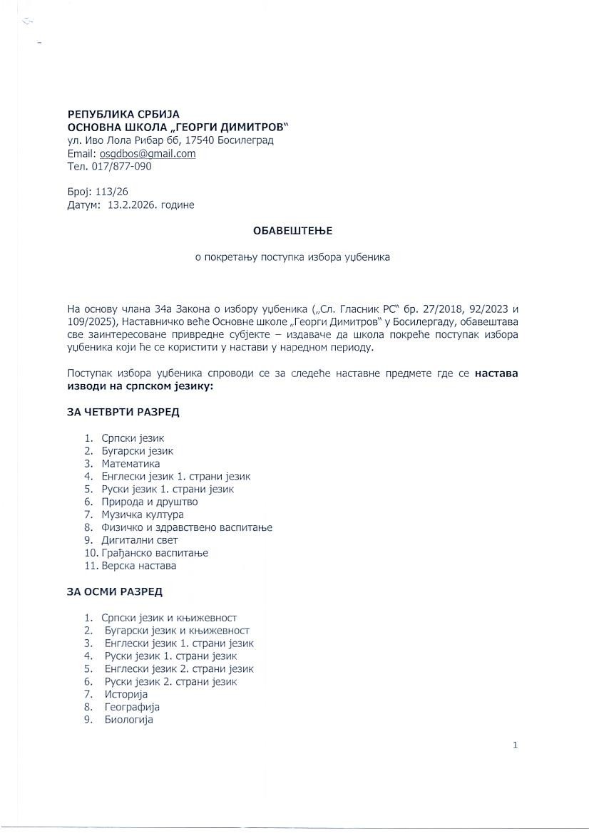ОАВЕШТЕЊЕ О ПОКРЕТАЊУ ПОСТУПКА ИЗБОРА УЏБЕНИКАДатум: 14. Februar 2026 13:17 Категорија: Новости ![]() |